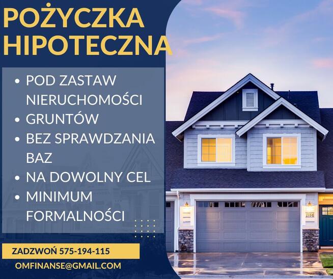 Pożyczka pod zastaw: mieszkania, domu, ziemi, działek -do 10 lat -bez sprawdzania baz dłużników -bez badania ...